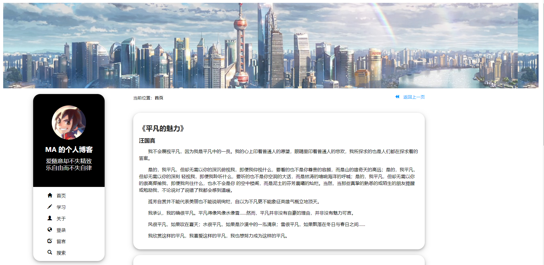 后来,我发现 Python 有个名为 Django 的模块,是一个好用、功能强大、兼备前后端配置的 Web 框架,代价就是学习成本有点大,正是因为其功能齐全,你得知悉它的编写规则,才能更好的运用框架。回想自己搭建博客的初衷,主要是存放个人学习笔记、记录生活等,想着这样折腾有点不值当;多学习一种框架,固然是一件好事,但这会大大延长 Blog 的上线日期。况且,当前的主要工作也不是学习 Django ,还得忙着毕设,所以对于 Django 的了解停留在入门。